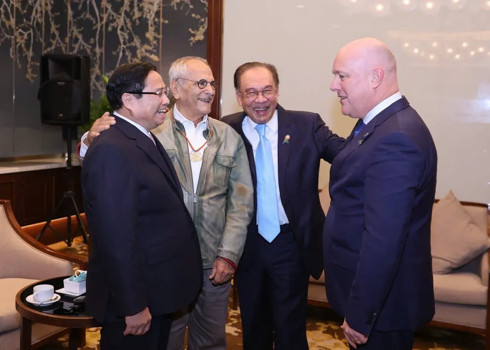Thủ tướng Phạm Minh Chính trao đổi với Tổng thống Timor-Leste José Ramos-Horta, Thủ tướng Malaysia Anwar Ibrahim và Thủ tướng New Zealand Christopher Luxon, sáng 26-2. Ảnh: VIẾT CHUNG