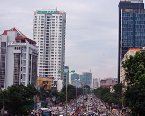 Trái ngược với cảnh tấp nập người xe của đường Trần Duy Hưng, nơi khởi đầu Đại Lộ Thăng Long, là sự ảm đạm của khu vực văn phòng cho thuê thuộc Toà tháp Grand Plaza (từ tầng 10 đến tầng 27).