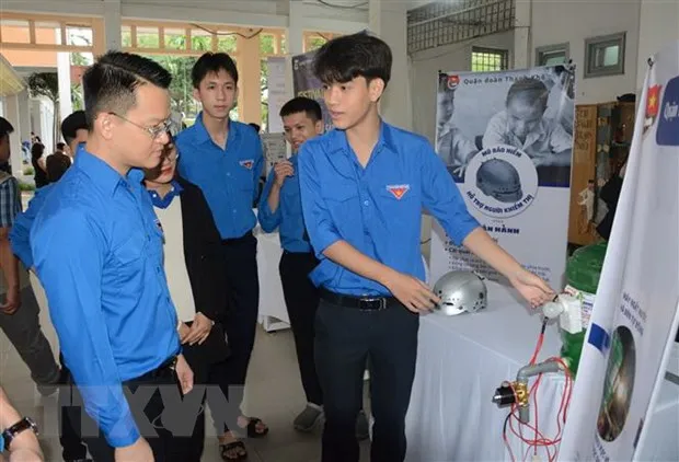 Triển lãm các sản phẩm sáng tạo, khởi nghiệp, các đề tài nghiên cứu khoa học tiêu biểu của thanh niên, sinh viên. (Ảnh: Văn Dũng/TTXVN)