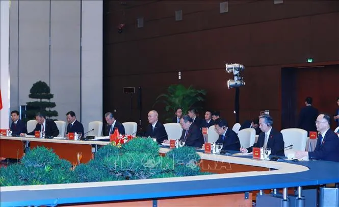 Đại biểu hai đoàn Việt Nam và Trung Quốc tham dự hội đàm. Ảnh: TTXVN