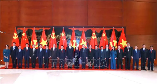 Hai bên bày tỏ vui mừng về kết quả hết sức tốt đẹp của cuộc Hội đàm cấp cao giữa đồng chí Tổng Bí thư Nguyễn Phú Trọng và Tổng Bí thư, Chủ tịch nước Trung Quốc Tập Cận Bình, nhất là việc hai nhà Lãnh đạo đã đạt nhận thức chung quan trọng về các quan điểm, nguyên tắc, phương hướng, biện pháp lớn nhằm tiếp tục làm sâu sắc và nâng tầm quan hệ hai Đảng, hai nước trong thời kỳ mới; thể hiện tầm nhìn lớn, quyết tâm cao của hai đồng chí Tổng Bí thư về tầm quan trọng và triển vọng tốt đẹp của quan hệ Việt - Trung.