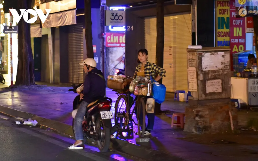 12h đêm, khi con đường tấp nập Trần Phú (Hà Đông) lặng tiếng xe cộ và người qua lại. Những ánh đèn đường cũng dần tắt lịm, chị Hiền vẫn ngồi ở đó, bên cạnh chiếc xe đạp rách và thúng hàng đã chuẩn bị sẵn là lúc chị bắt đầu bán hàng đêm.
