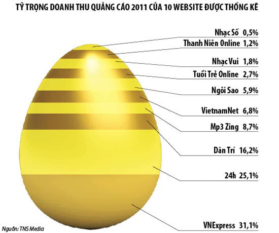 Theo TNS Media, vnexpress.net hiện đang dẫn đầu thị trường khi nắm giữ tới 31,1% tỷ trọng doanh thu quảng cáo của toàn thị trường trong năm 2011.