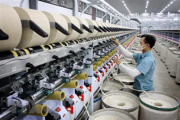 Sản xuất sợi tại Công ty TNHH Logitex (Cụm công nghiệp Vũ Ninh, huyện Kiến Xương). (Ảnh: Thế Duyệt/TTXVN)