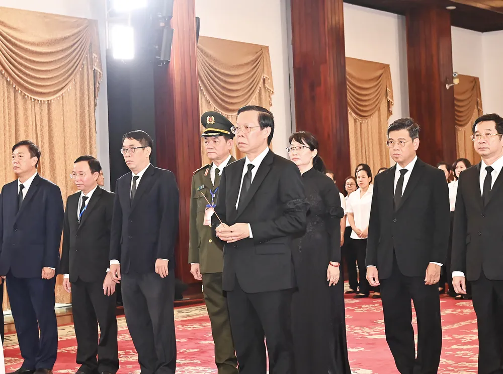 Tại TPHCM, từ sáng sớm, lãnh đạo thành phố do ông Phan Văn Mãi, Chủ tịch UBND TPHCM, Trưởng Ban Tổ chức Lễ viếng và Lễ truy điệu đồng chí Tổng Bí thư Nguyễn Phú Trọng tại Hội trường Thống Nhất, đã có mặt kiểm tra công tác chuẩn bị cho lễ viếng được chu đáo và trang trọng.