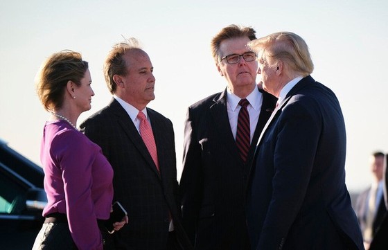 Tổng thống Mỹ Donald Trump và Tổng chưởng lý bang Texas Ken Paxton (thứ hai từ trái sang) tại TP Austin vò đầu năm nay. Ảnh: The New York Times