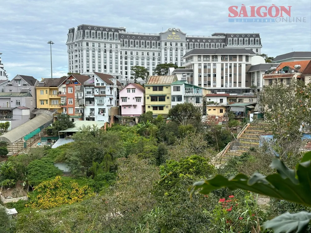 Cụm công trình xây dựng không phép tại khu đồi Cù, TP Đà Lạt. Ảnh: ĐOÀN KIÊN
