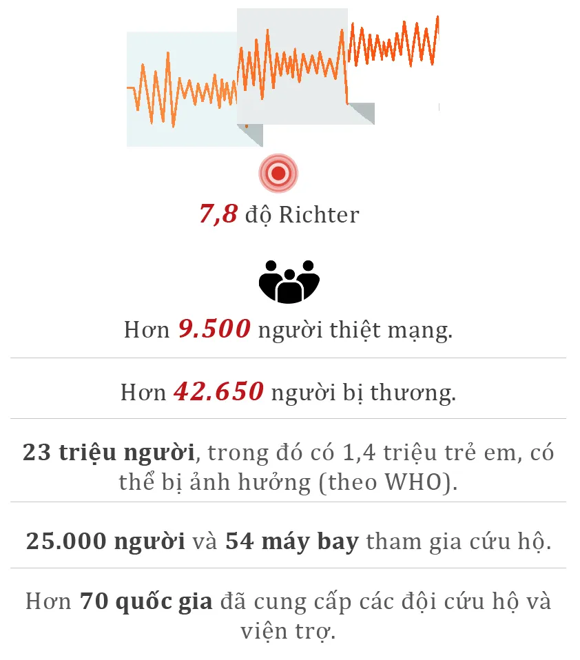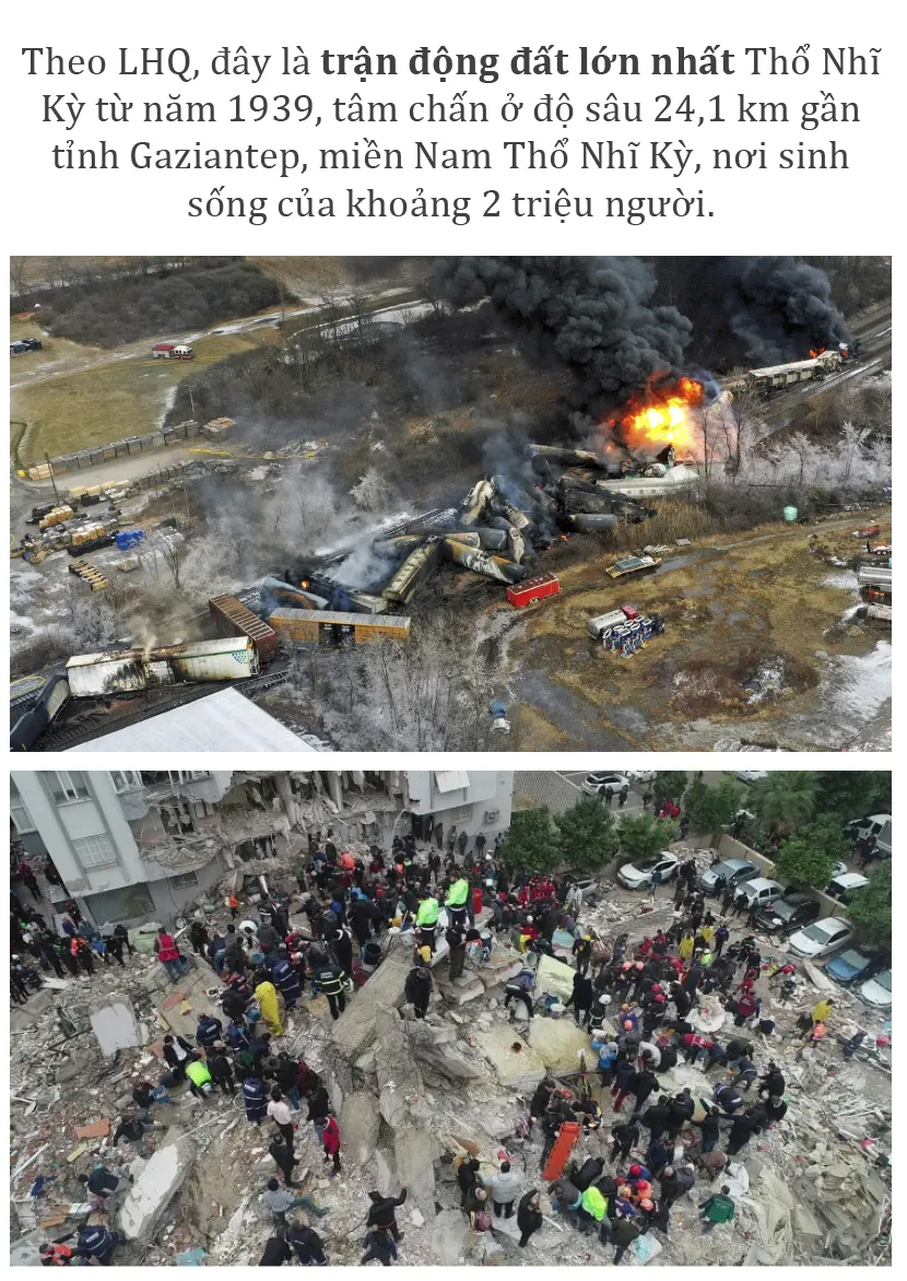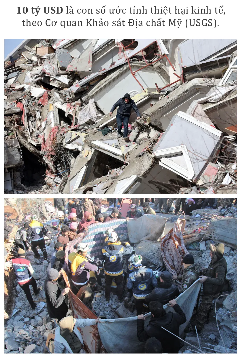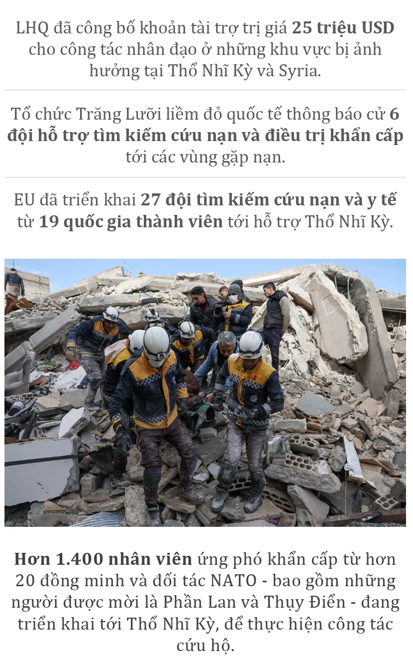 (ĐTTCO) - Trận động đất mạnh 7,8 độ Richter vào sáng sớm ngày 6-2 khiến Thổ Nhĩ Kỳ và Syria bị thiệt hại nặng nề về người và của. Tính đến 16 giờ ngày 8-2 (giờ Việt Nam) đã có hơn 9.500 người thiệt mạng, hơn 42.650 người bị thương và hơn 11.000 tòa nhà bị phá hủy. WHO cảnh báo, số người thiệt mạng có thể lên đến 20.000.