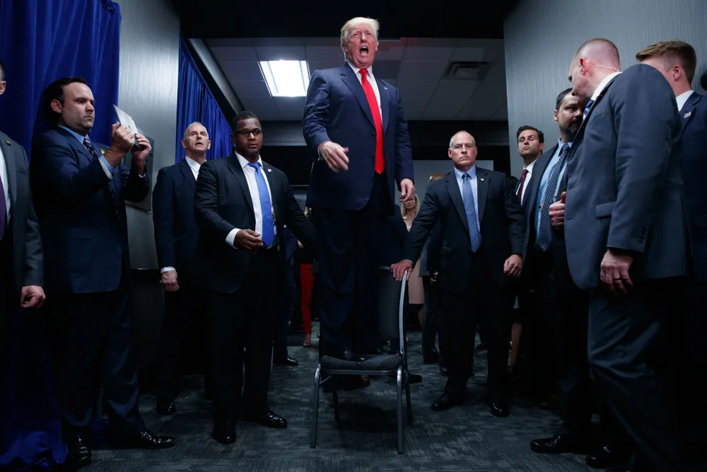 Phóng viên ảnh Evan Vucci đảm trách nhiệm vụ theo dõi diễn biến tại Hội nghị toàn quốc đảng Cộng hòa và đặc biệt để mắt tới ông Donald Trump, người đánh bại các ứng viên khác để giành vé của đảng Cộng hòa trong cuộc đua vào Nhà Trắng. Trong suốt giai đoạn này, những phóng viên phải tất bật từ rất sớm và di chuyển nhiều tới mức họ không kịp nhận ra mình đang ở đâu.