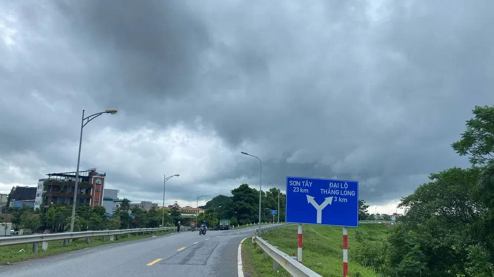 Dấu hiệu cơn dông nhìn từ ngoại ô Hà Nội. Ảnh: VĂN PHÚC