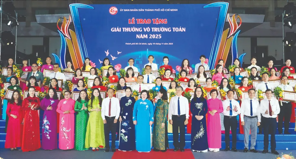 Cùng với nghi thức tri ân, buổi lễ còn có phần trao Giải thưởng Võ Trường Toản lần thứ 28 năm 2025 đến 50 cán bộ quản lý, giáo viên.