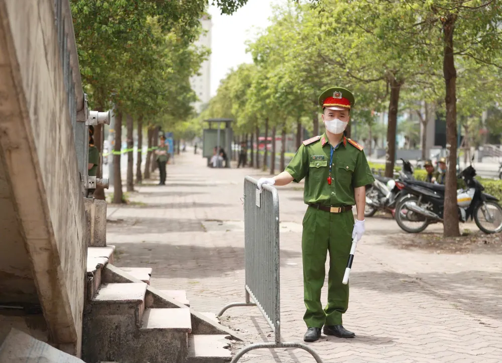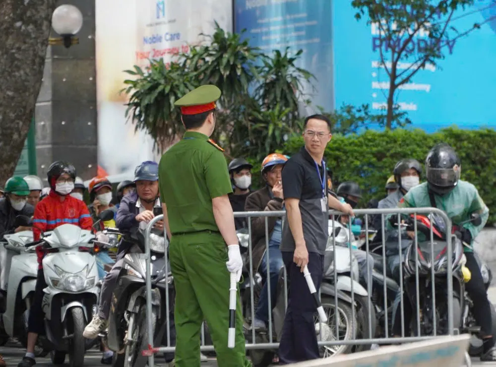 An ninh được "thắt chặt" trên tuyến đường đoàn xe của Tổng Bí thư, Chủ tịch Trung Quốc Tập Cận Bình từ sân bay Nội Bài về trung tâm TP Hà Nội. Ảnh: VIẾT CHUNG