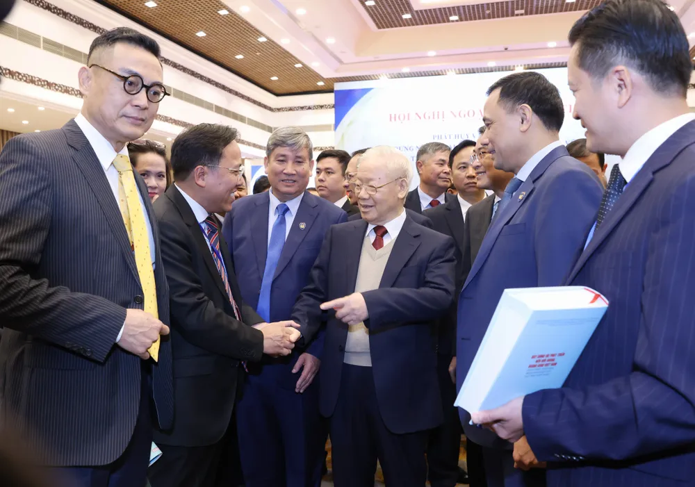 Tổng Bí thư Nguyễn Phú Trọng và các đại biểu dự Hội nghị Ngoại giao lần thứ 32, sáng 19-12-2023. Ảnh: QUANG PHÚC