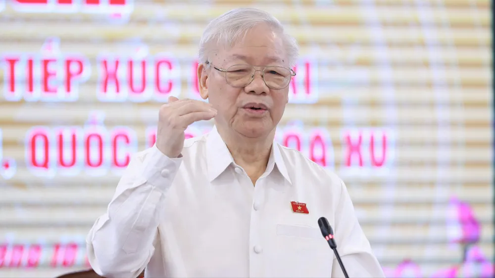 Tổng Bí thư Nguyễn Phú Trọng tại hội nghị tiếp xúc cử tri sáng 14-10-2023. Ảnh: QUANG PHÚC