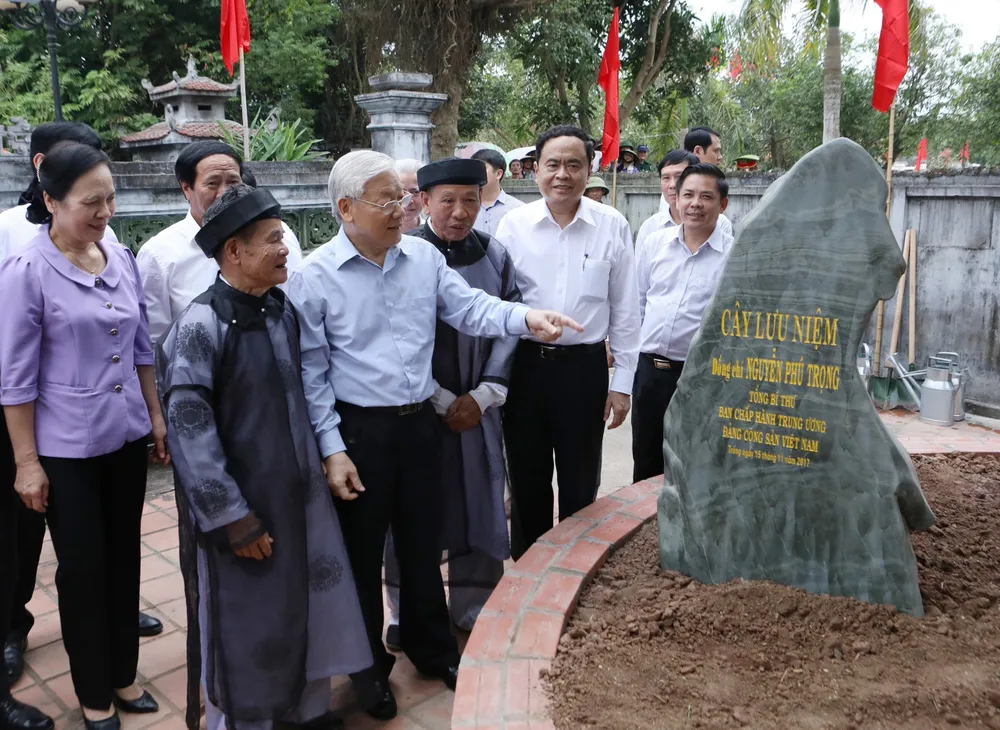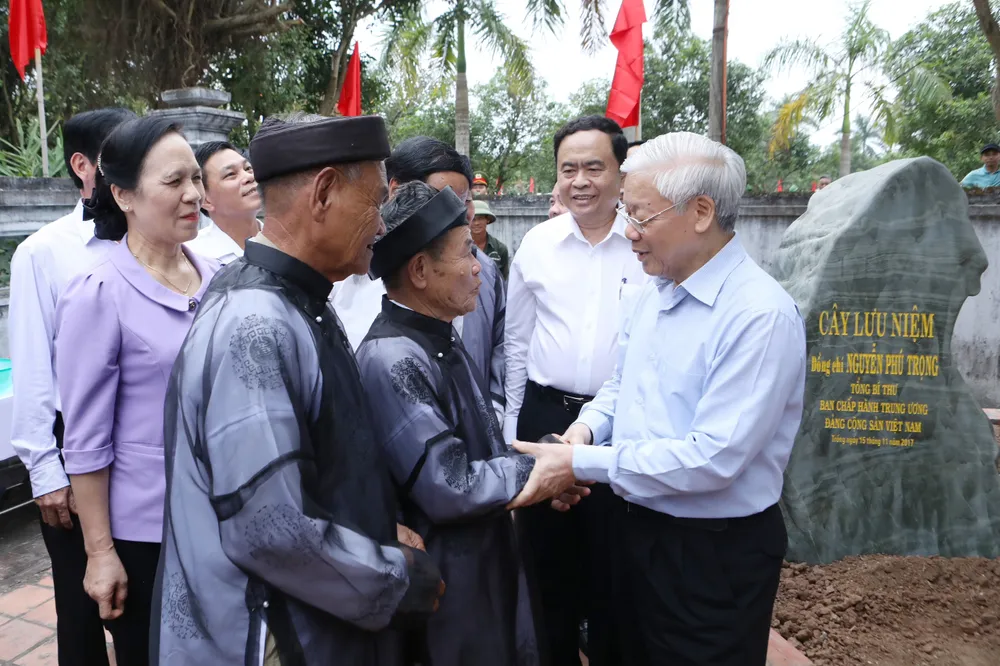 Tổng Bí thư Nguyễn Phú Trọng và nhân dân dự Ngày hội đại đoàn kết toàn dân tộc tại Làng văn hóa Thượng Điện, xã Vinh Quang, huyện Vĩnh Bảo, TP Hải Phòng, chiều 15-11-2017. Ảnh: VIẾT CHUNG