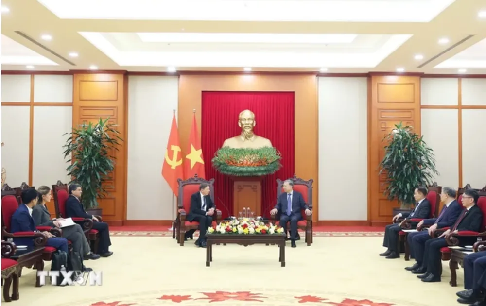 Tổng Bí thư Tô Lâm bày tỏ mong muốn các nhà đầu tư nước ngoài, trong đó có các nhà đầu tư Hoa Kỳ, tiếp tục tăng cường đầu tư tại Việt Nam, nhất là trong các lĩnh vực chuyển đổi số, chuyển đổi xanh, năng lượng tái tạo, năng lượng sạch, ứng phó với biến đổi khí hậu.