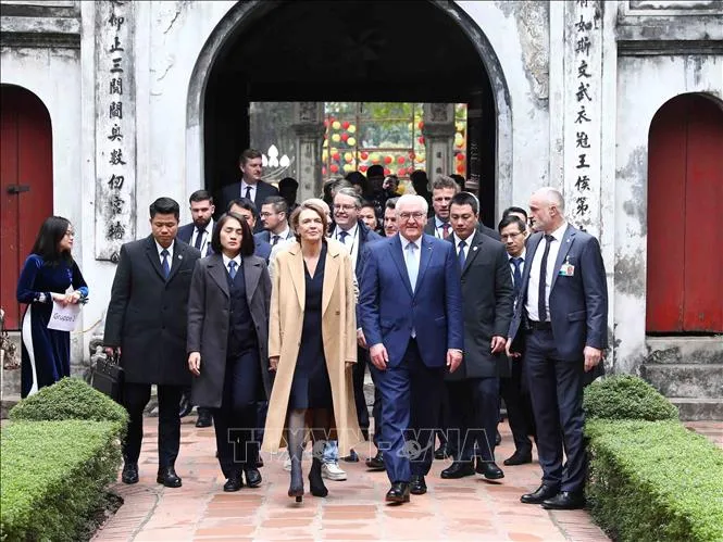 Tổng thống Cộng hòa Liên bang Đức Frank-Walter Steinmeier và Phu nhân tham quan khu di tích lịch sử Văn Miếu - Quốc Tử Giám. Ảnh: Phạm Kiên/TTXVN Tổng thống Cộng hòa Liên bang Đức Frank-Walter Steinmeier và Phu nhân tham quan khu di tích lịch sử Văn Miếu - Quốc Tử Giám. Ảnh: Phạm Kiên/TTXVN