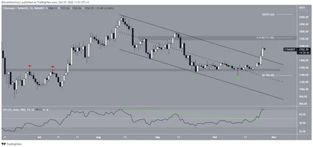 Giá Ethereum đã tăng kể từ đó và đẩy nhanh tốc độ tăng của nó vào ngày 23-10. Hai ngày sau, altcoin này đã bứt phá lên trên một kênh song song giảm dần mà trước đó đã có từ ngày 14-8. Một sự đột phá lên trên các cấu trúc dài hạn như vậy thường dẫn đến một chuyển động tăng liên tục cho giá ETH.