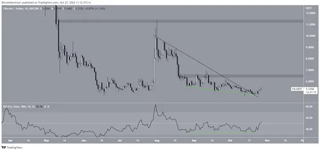 Giá Filecoin đã giảm xuống bên dưới đường kháng cự giảm dần kể từ ngày 1-8. Phong trào đi xuống dẫn đến mức thấp nhất là 4,73 USD vào ngày 13-10.