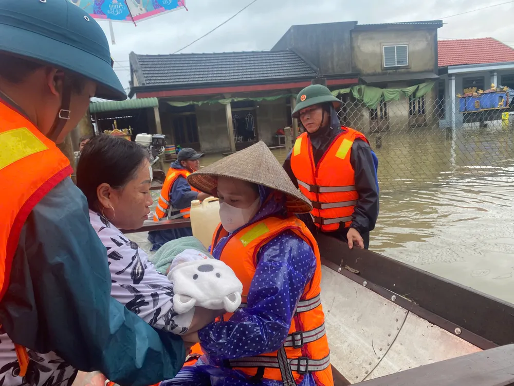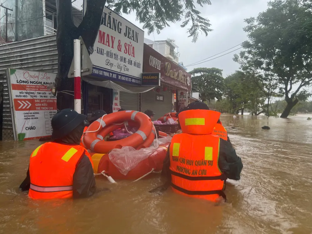 Lực lượng quân đội hỗ trợ người dân vùng "rốn lũ" TP Huế