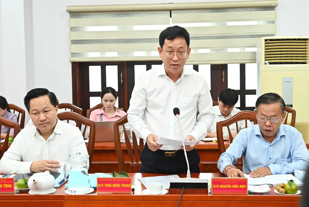 Phó Bí thư Thường trực Thành ủy TP Thủ Đức Trần Quốc Trung báo cáo. Ảnh: VIỆT DŨNG