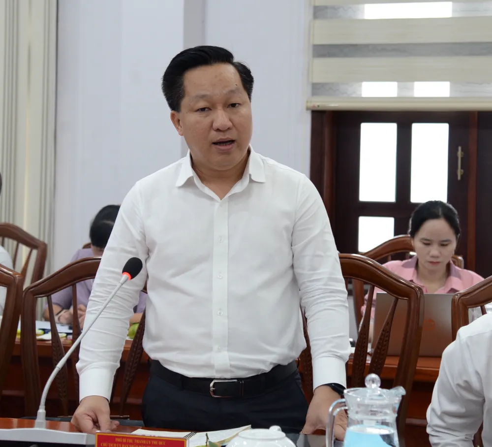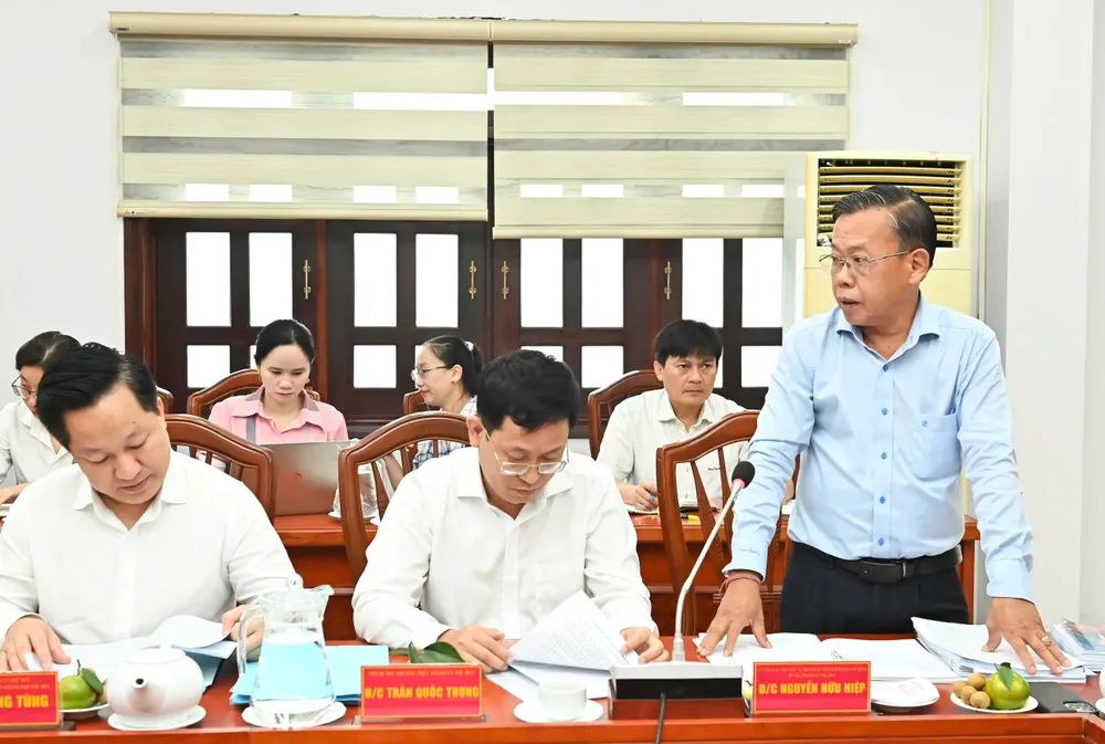 Bí thư Thành ủy TP Thủ Đức Nguyễn Hữu Hiệp phát biểu tại buổi làm việc. Ảnh: VIỆT DŨNG