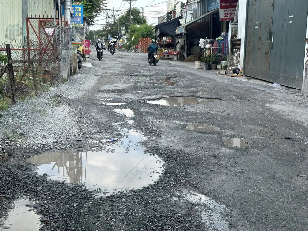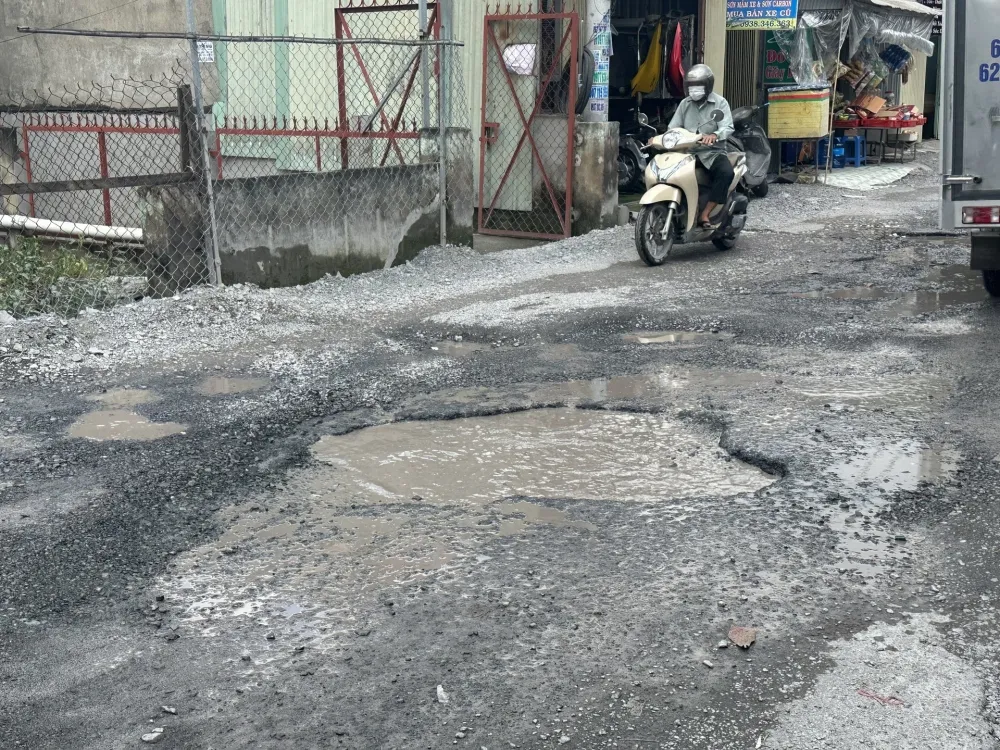 Đường Bưng Ông Thoàn, phường Tăng Nhơn Phú B, Tp Thủ Đức đoạn từ giao lộ Đình Phong Phú đến cầu Vàm Xuồng chỉ dài khoảng hơn 600m nhưng lại rất mất an toàn giao thông, bởi trên suốt đoạn đường xuất hiện chi chít “ổ gà” “ổ voi”, có đoạn ngập nước tạo thành cái bẫy đối với người dân mỗi khi lưu thông qua.