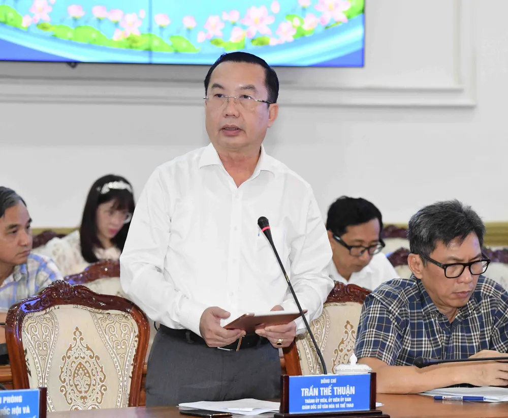 Giám đốc Sở VH-TT Trần Thế Thuận báo cáo tại phiên họp. Ảnh: VIỆT DŨNG