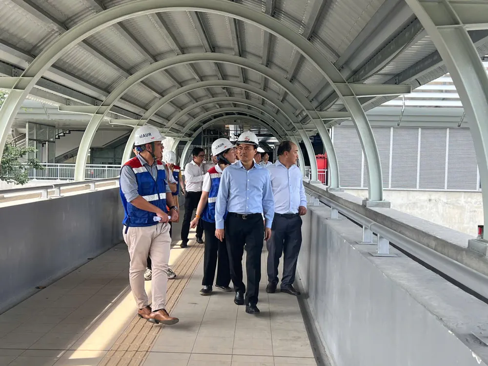 Phó Chủ tịch UBND TPHCM Bùi Xuân Cường kiểm tra các nhà ga tuyến Metro Bến Thành - Suối Tiên trước khi đưa vào vận hành thương mại. Ảnh: QUỐC HÙNG