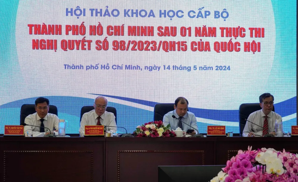 PGS-TS Đỗ Phú Trần Tình, Viện trưởng Viện Phát triển chính sách ĐHQG TPHCM, nhận diện có 5 vấn đề còn tồn tại khi triển khai Nghị quyết 98. Trong đó, dù Quốc hội ban hành một số cơ chế đặc thù cho TPHCM nhưng trong thực tế triển khai vẫn phải thực hiện theo quy trình, thủ tục (phải thông qua bộ, ngành trung ương) dẫn đến chồng chéo, chậm trễ. Mặt khác, chưa có nhân sự chuyên trách ở bộ, ngành trung ương và TPHCM; tốc độ xây dựng văn bản hướng dẫn thực hiện nghị quyết còn khá chậm.