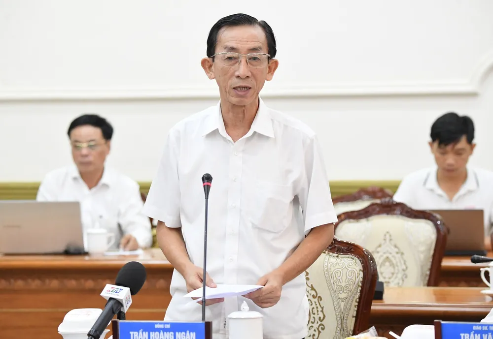 PGS.TS Trần Hoàng Ngân phát biểu tại phiên họp. Ảnh: VIỆT DŨNG