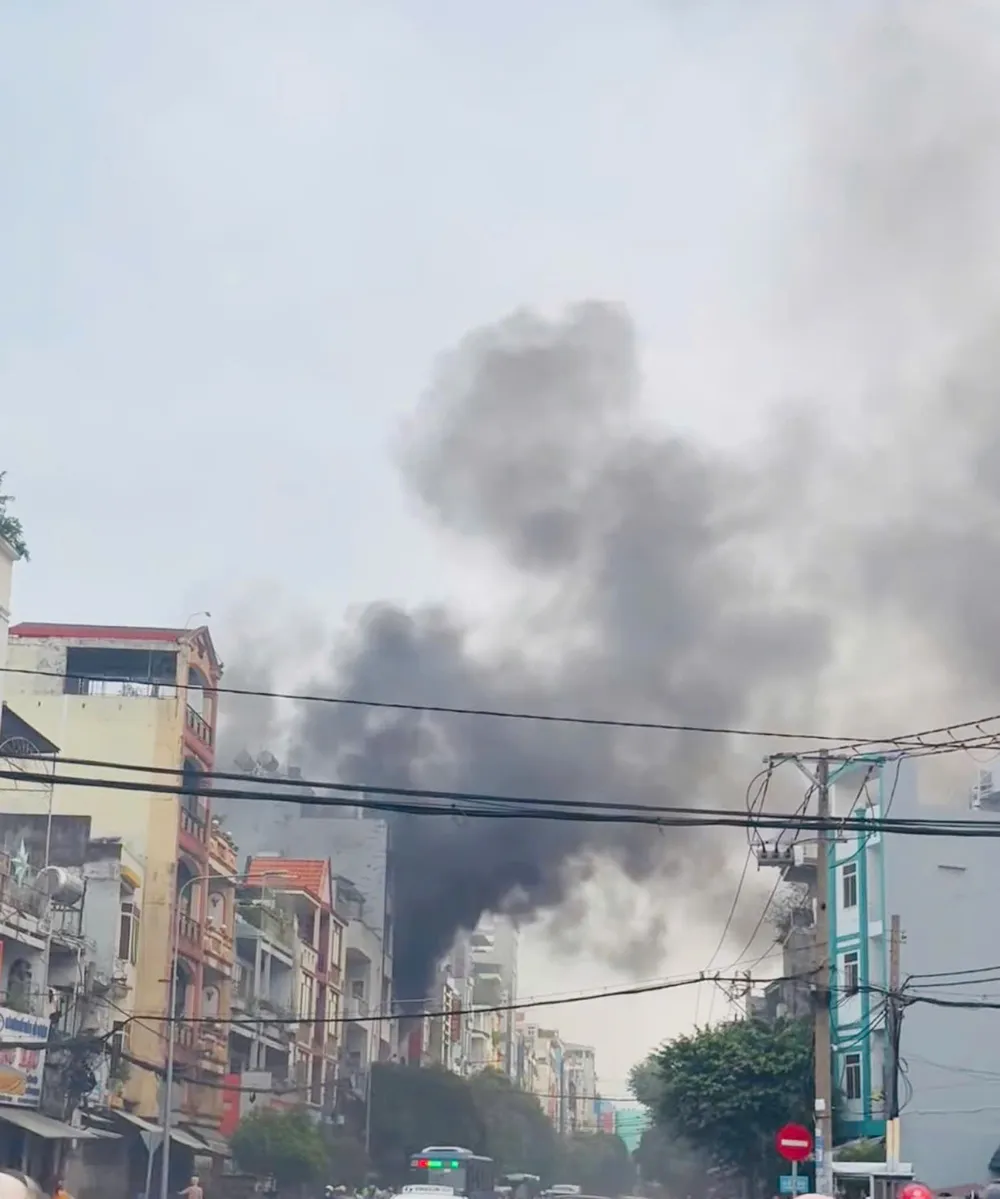Khói đen bốc cao hàng chục mét