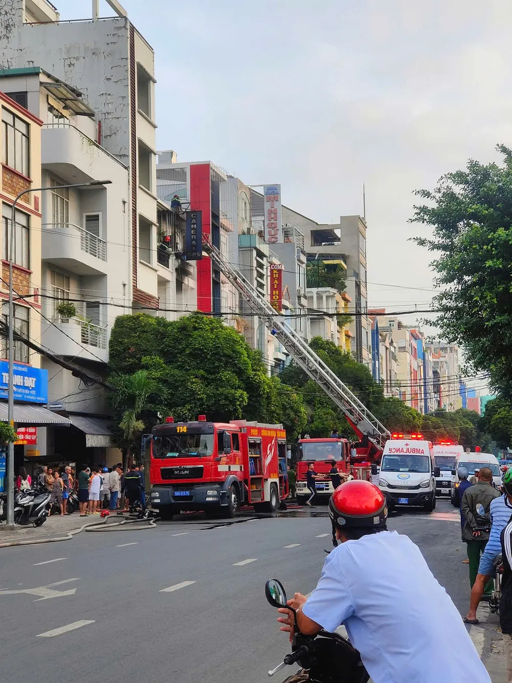 Trước đó, khoảng 6 giờ 30 cùng ngày, người dân sinh sống ở đường Xuân Hồng (phường 12, quận Tân Bình) phát hiện ngọn lửa bùng cháy dữ dội ở căn nhà nhiều tầng trên đường này nên hô hoán. Mọi người dùng nước và bình chữa cháy dập lửa nhưng bất thành.