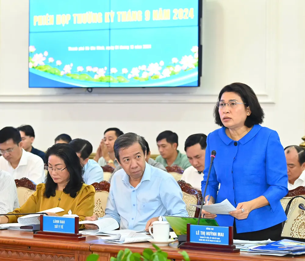 Giám đốc Sở KH-ĐT TPHCM Lê Thị Huỳnh Mai báo cáo tại phiên họp. Ảnh: VIỆT DŨNG