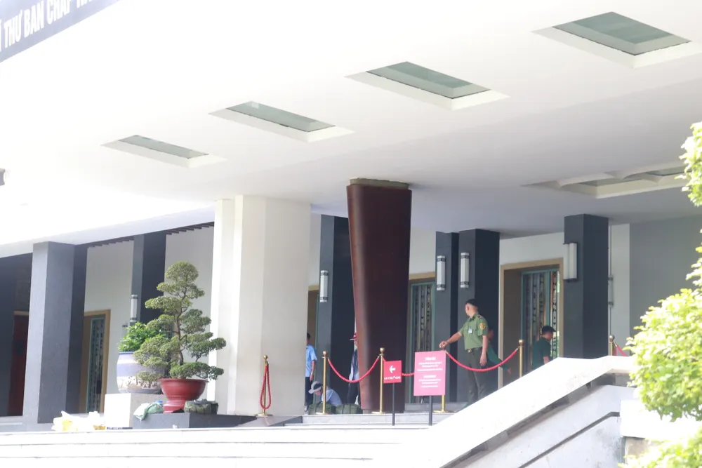 Một nhân viên đang thi công tại khu vực này cho biết, rạp và đường dẫn cho khách vào nơi diễn ra lễ viếng và lễ truy điệu được đơn vị này bắt đầu triển khai thực hiện từ trưa ngày 22-7 và dự kiến sẽ hoàn thành vào sáng 24-7.