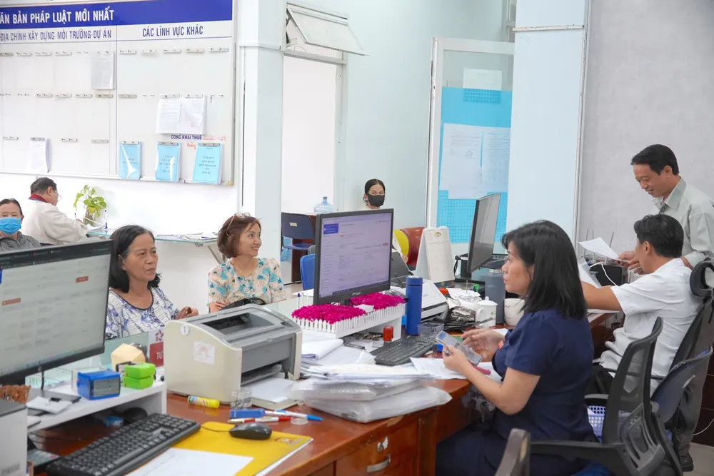 Cán bộ, công chức phường Tân Sơn Nhất phục vụ người dân tại Trung tâm Phục vụ hành chính công của phường. Ảnh: QUANG HUY