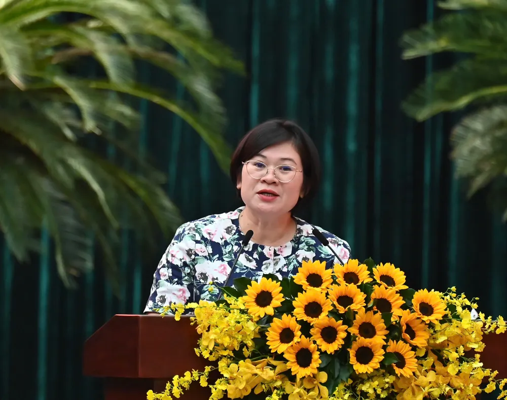 Trưởng Ban Tổ chức Thành ủy TPHCM Văn Thị Bạch Tuyết thông tin về việc triển khai tổng kết Nghị quyết 18 của Ban Chấp hành Trung ương Đảng khóa XII. Ảnh: VIỆT DŨNG