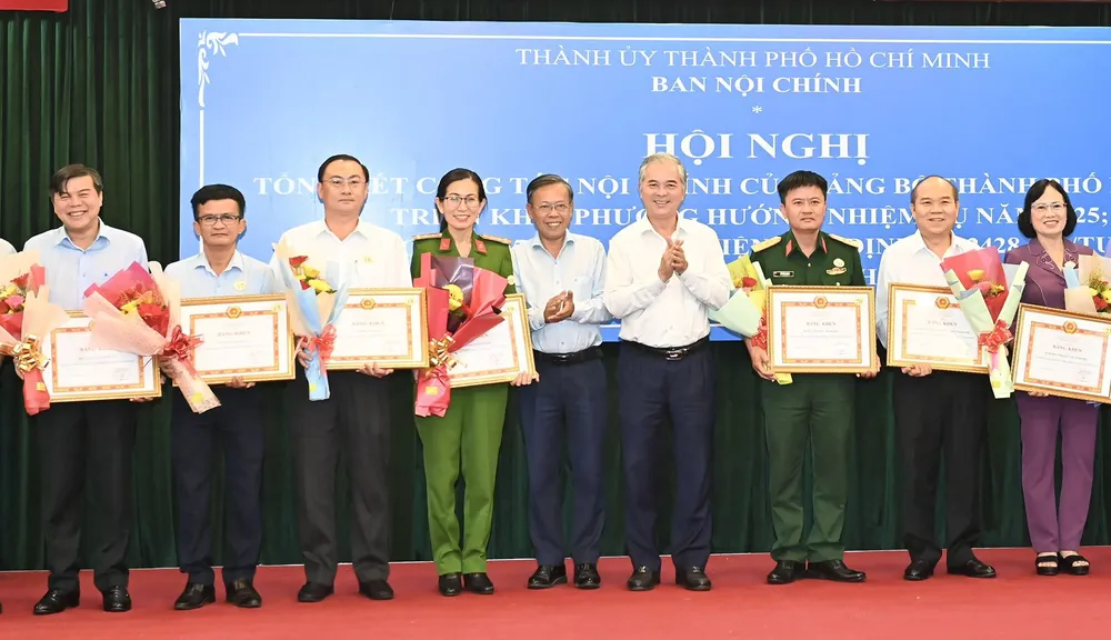 Dịp này, Ban Thường vụ Thành ủy TPHCM quyết định tặng Bằng khen cho 25 tập thể đã có thành tích xuất sắc trong công tác nội chính của Đảng bộ TPHCM.