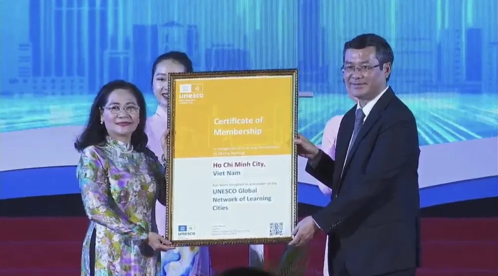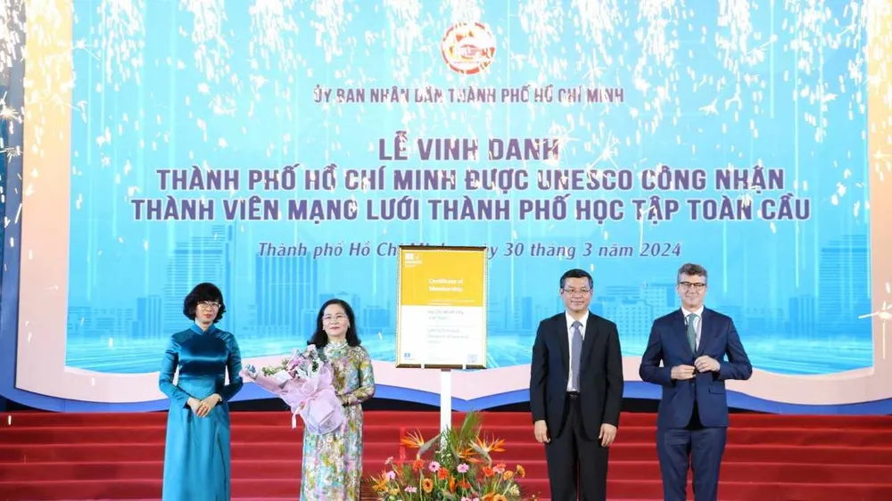 Phát biểu tại lễ đón nhận bằng công nhận, bà Nguyễn Thị Lệ, Chủ tịch HĐND TPHCM nhấn mạnh, việc TPHCM trở thành thành viên chính thức Mạng lưới thành phố học tập toàn cầu của UNESCO là niềm vinh dự lớn lao.