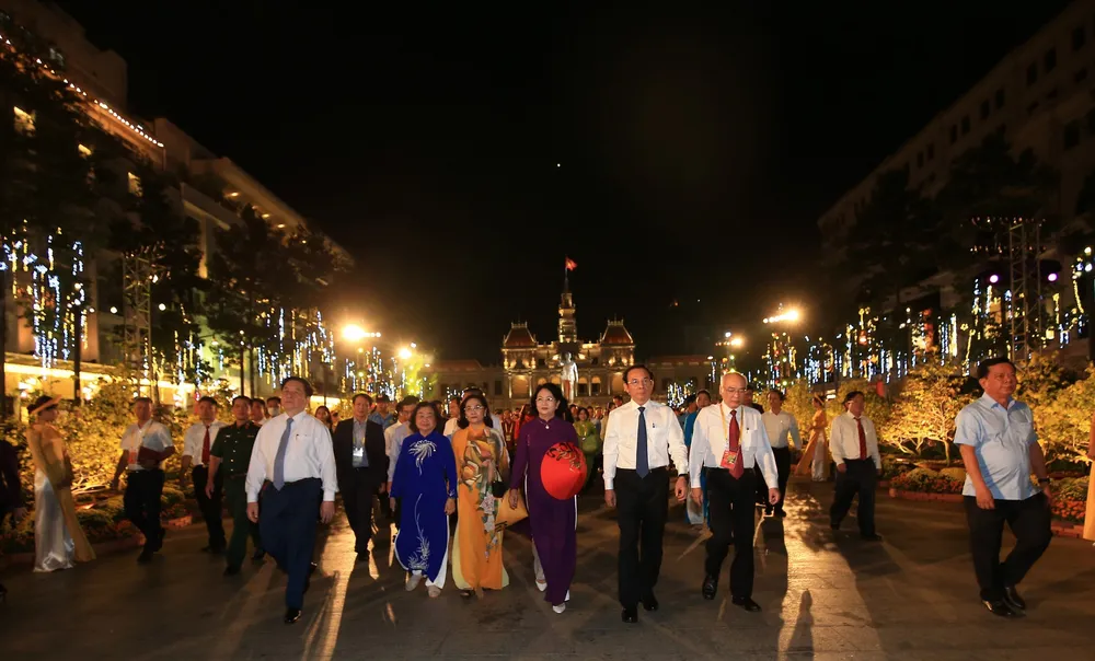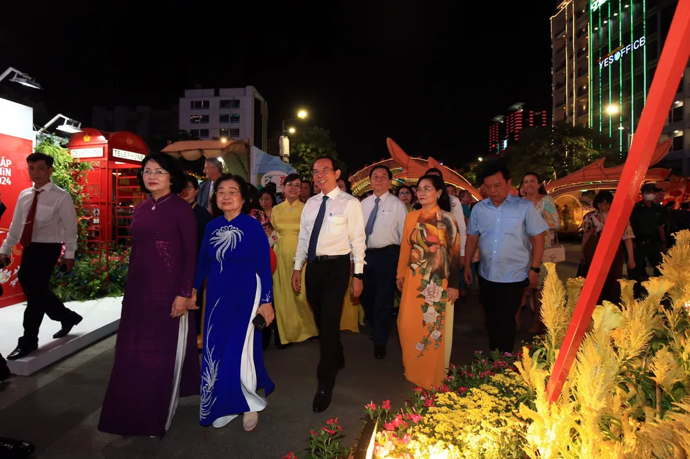 Các đại biểu cùng tham quan Đường hoa Nguyễn Huệ Tết Giáp Thìn 2024. Ảnh: DŨNG PHƯƠNG