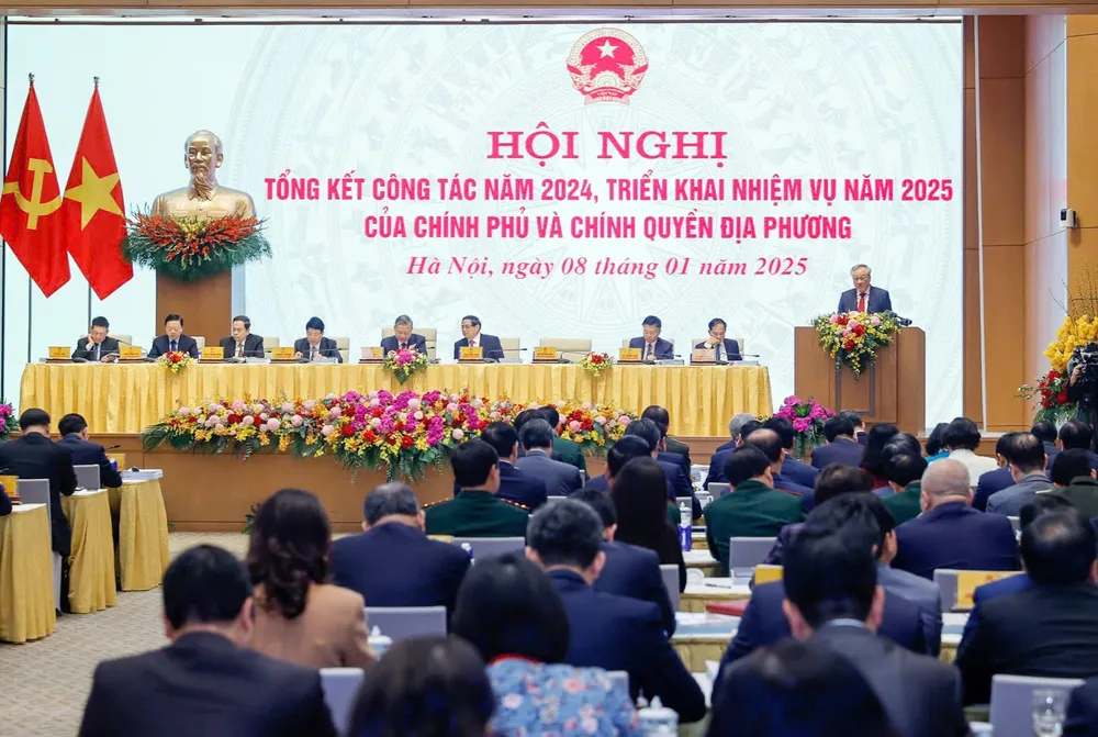 Hội nghị tổng kết công tác năm 2024, triển khai nhiệm vụ năm 2025 của Chính phủ và chính quyền địa phương được tổ chức theo hình thức trực tuyến. Ảnh: VIẾT CHUNG
