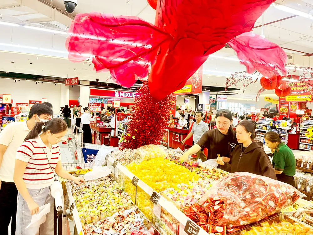 Khách tấp nập mua hàng tết tại một siêu thị trên địa bàn TPHCM