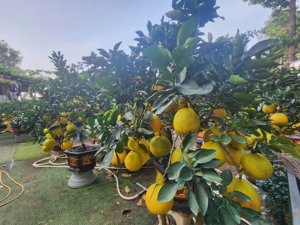 Bưởi Diễn từ miền Bắc được đưa về bán tại các phường trung tâm TPHCM, có giá từ 7-70 triệu đồng/chậu