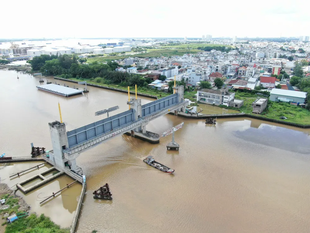 Cống ngăn triều Phú Xuân, phường Phú Thuận, TPHCM. Ảnh: HOÀNG HÙNG