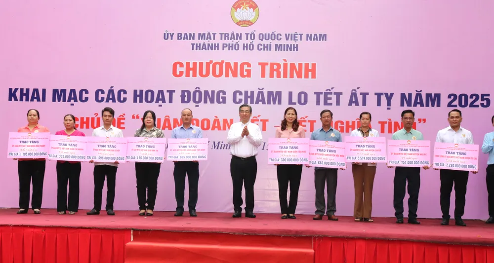 Trong dịp tết năm nay, bên cạnh sự quan tâm chăm lo thực hiện chính sách an sinh xã hội của Thành ủy và chính quyền thành phố, hệ thống MTTQ Việt Nam TPHCM cũng phối hợp tổ chức chương trình “Xuân đoàn kết - Tết nghĩa tình” chăm lo hơn 200.000 suất quà, với tổng kinh phí hơn 110 tỷ đồng. Trong đó, MTTQ thành phố chi hơn 26 tỷ đồng, cấp xã vận động chăm lo tết hơn 41 tỷ đồng; cấp huyện vận động chăm lo hơn 43 tỷ đồng.