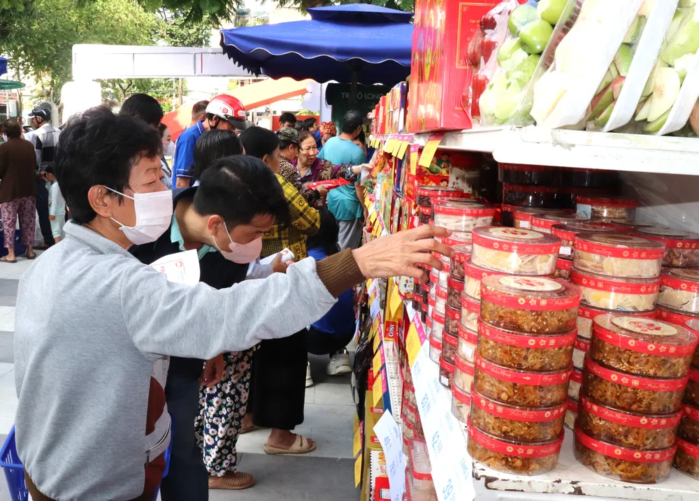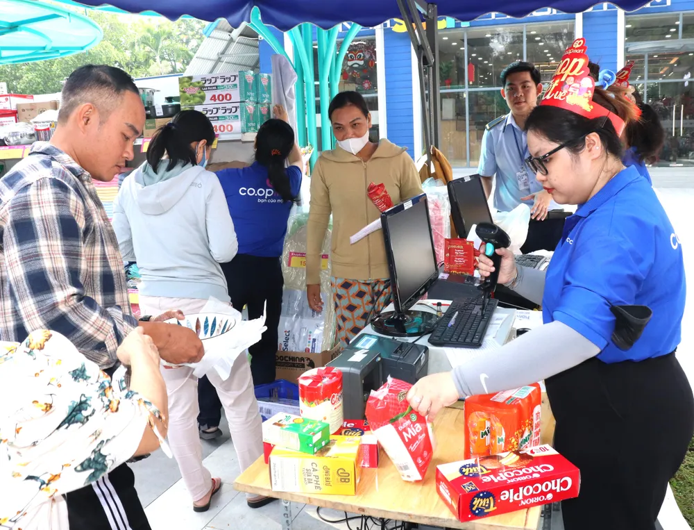 Người dân mua hàng tết tại siêu thị ngay tại chương trình bằng phiếu quà tặng