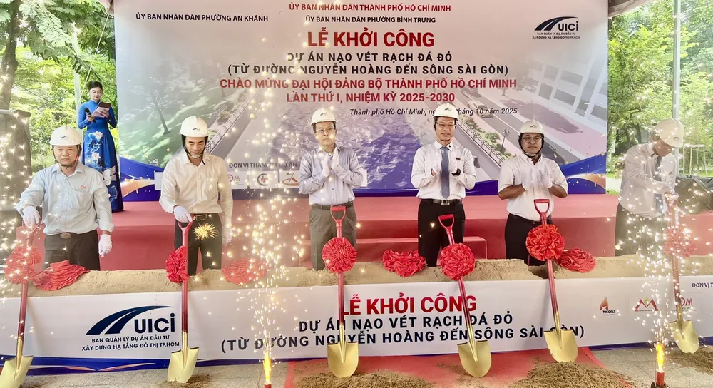 Sáng 10-10, Ban Quản lý dự án đầu tư xây dựng hạ tầng đô thị TPHCM tổ chức Lễ khởi công Dự án nạo vét rạch Đá Đỏ (đoạn từ đường Nguyễn Hoàng đến sông Sài Gòn), thuộc địa bàn phường An Khánh và phường Bình Trưng.