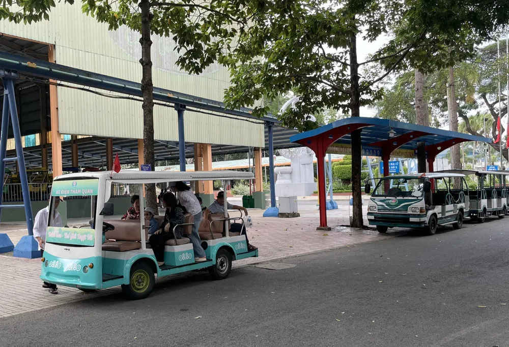 Xe điện chở khách tại Công viên Văn hóa Đầm Sen. Ảnh: HẢI NGỌC