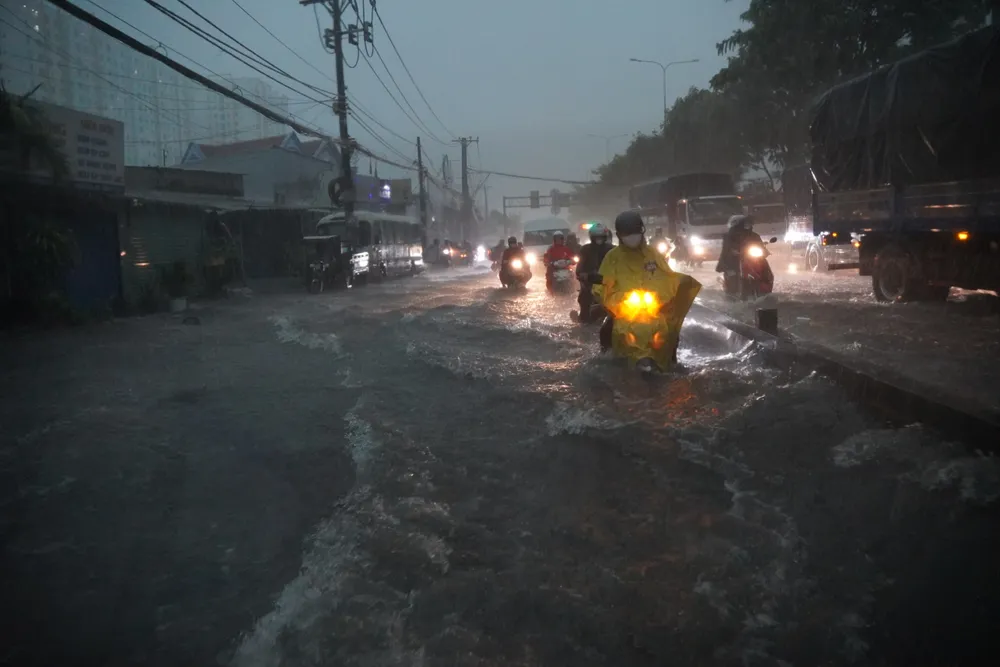 Do mưa lớn khiến trời tối mù mịt gây khó khăn cho việc đi lại của người dân. Mưa lớn cũng gây ngập nặng nhiều tuyến đường như Song Hành, Nguyễn Văn Quá (quận 12), đường Lê Đức Thọ, Nguyễn Văn Khối, Phạm Huy Ích, Phạm Văn Chiêu (quận Gò Vấp)...