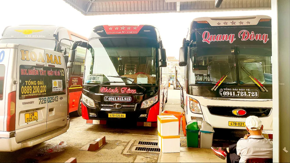 Nhiều doanh nghiệp vận tải chạy tuyến Tây Nguyên đang đậu trong Bến xe Miền Tây (quận Bình Tân) để chờ đón khách